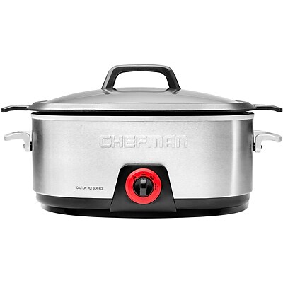 Chefman 6 Qtr. Slow Cooker with Die-Cast Insert, Silver & Black